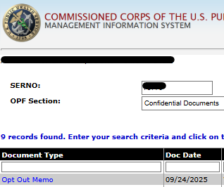 When the PHS-7090 is approved by the Final Approving Authority, the officer will receive an eOPF notification via email that the approved PHS-7090 has been indexed into the Confidential Documents section of the eOPF with the document titled "Opt Out Memo"