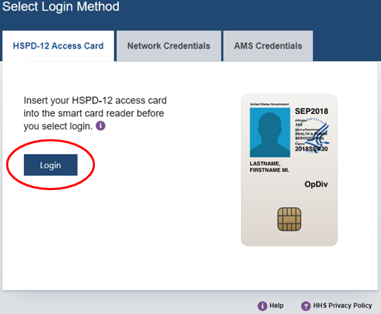 Login to CCMIS using your PIV, CAC, or ALT card