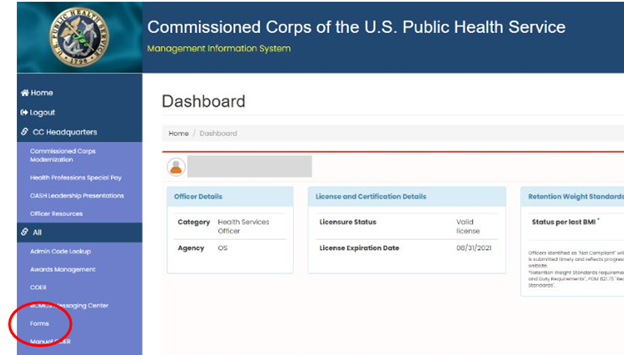 Go to the Officer Secure Area of the Commissioned Corps Management Information System (CCMIS) - https://dcp.psc.gov/osa/osa_security_statement.aspx