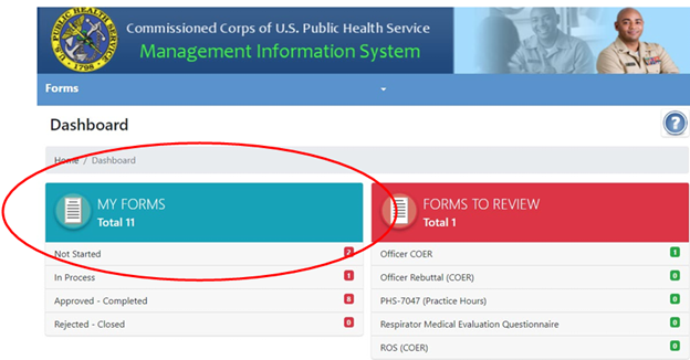 Click the large, turquoise box labeled "MY FORMS"